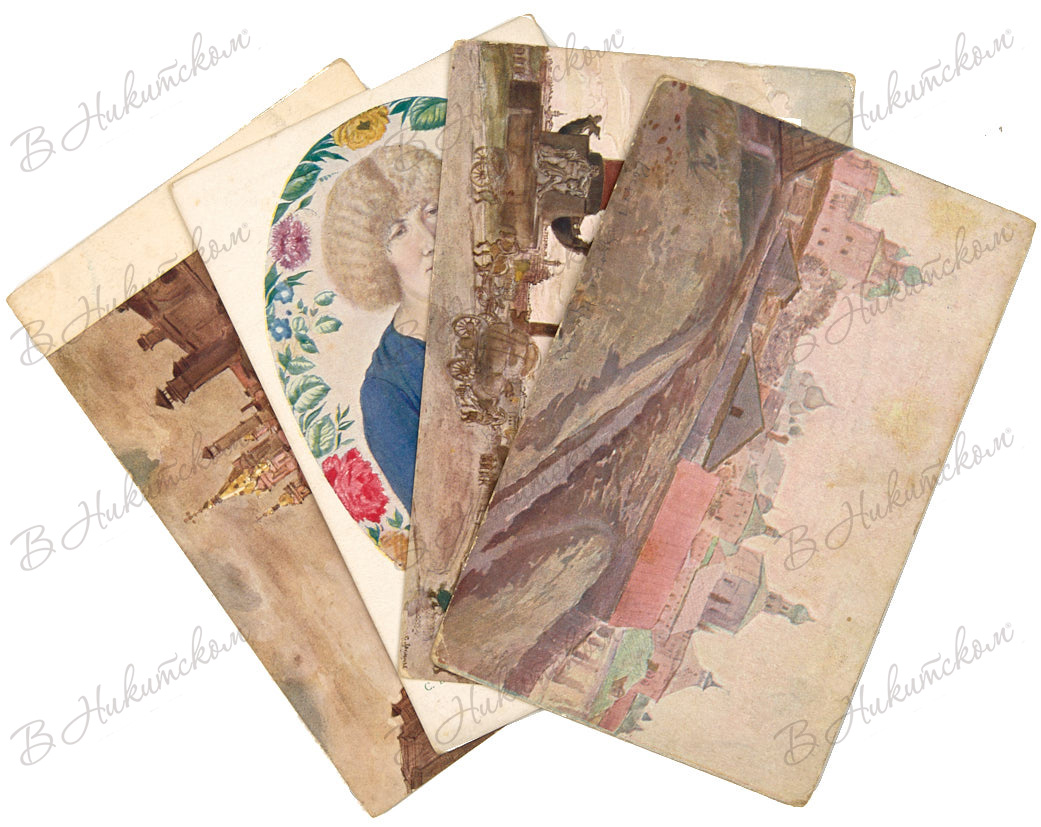 Лот из 4 открытых писем с работами художников С. Чехонина и С. Еремича. 1910-е гг. Издательство Общины Святой Евгении. 9*14 см.