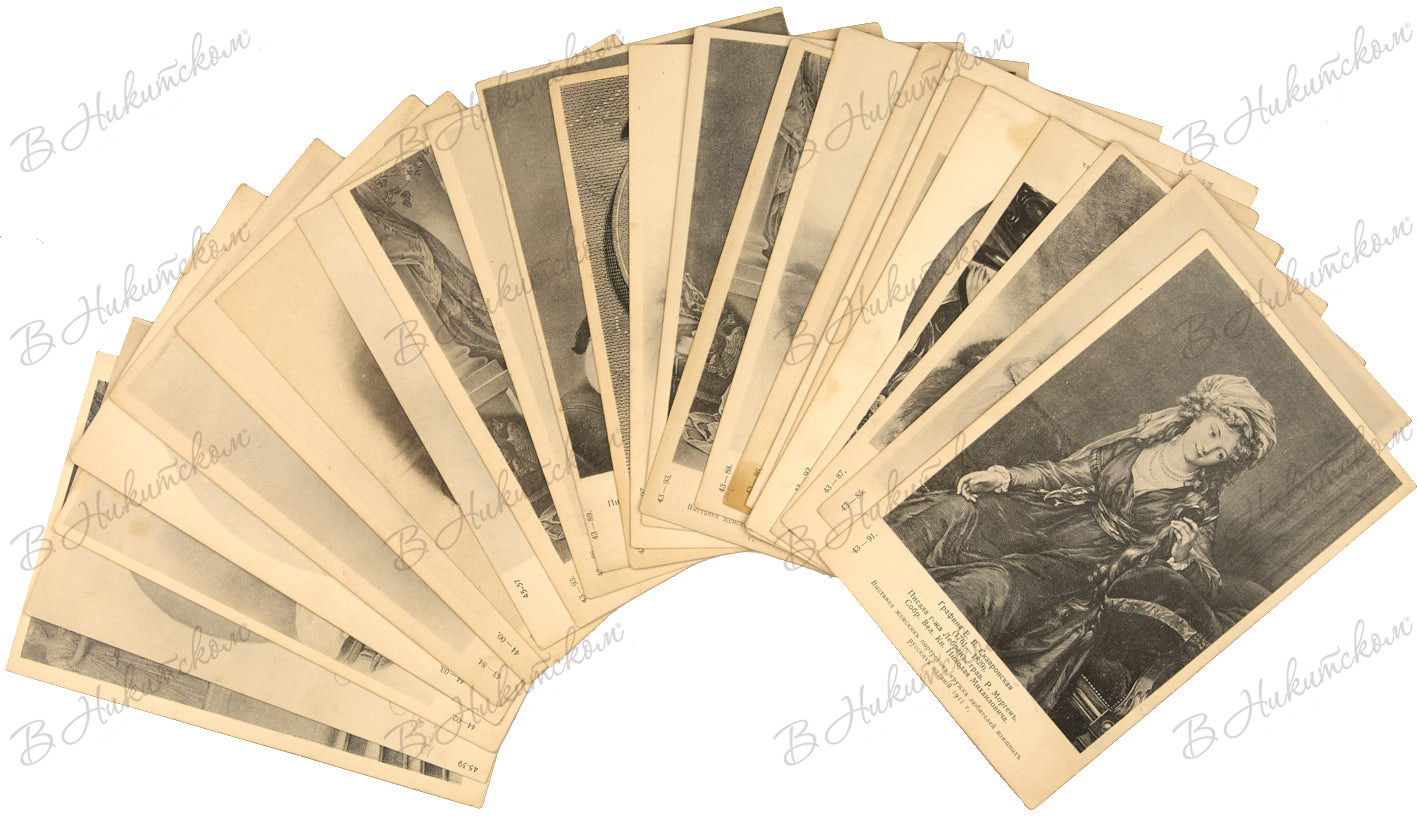 Лот из 24 открытых писем к выставке женских портретов Кружка любителей изящных женских изданий. 1911 г. Община Святой Евгении. 9,5*14 см.