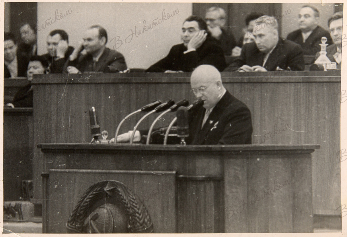 Н. С. Хрущев на трибуне съезда. 1950-е гг. Фотография, 11,5*17 см.