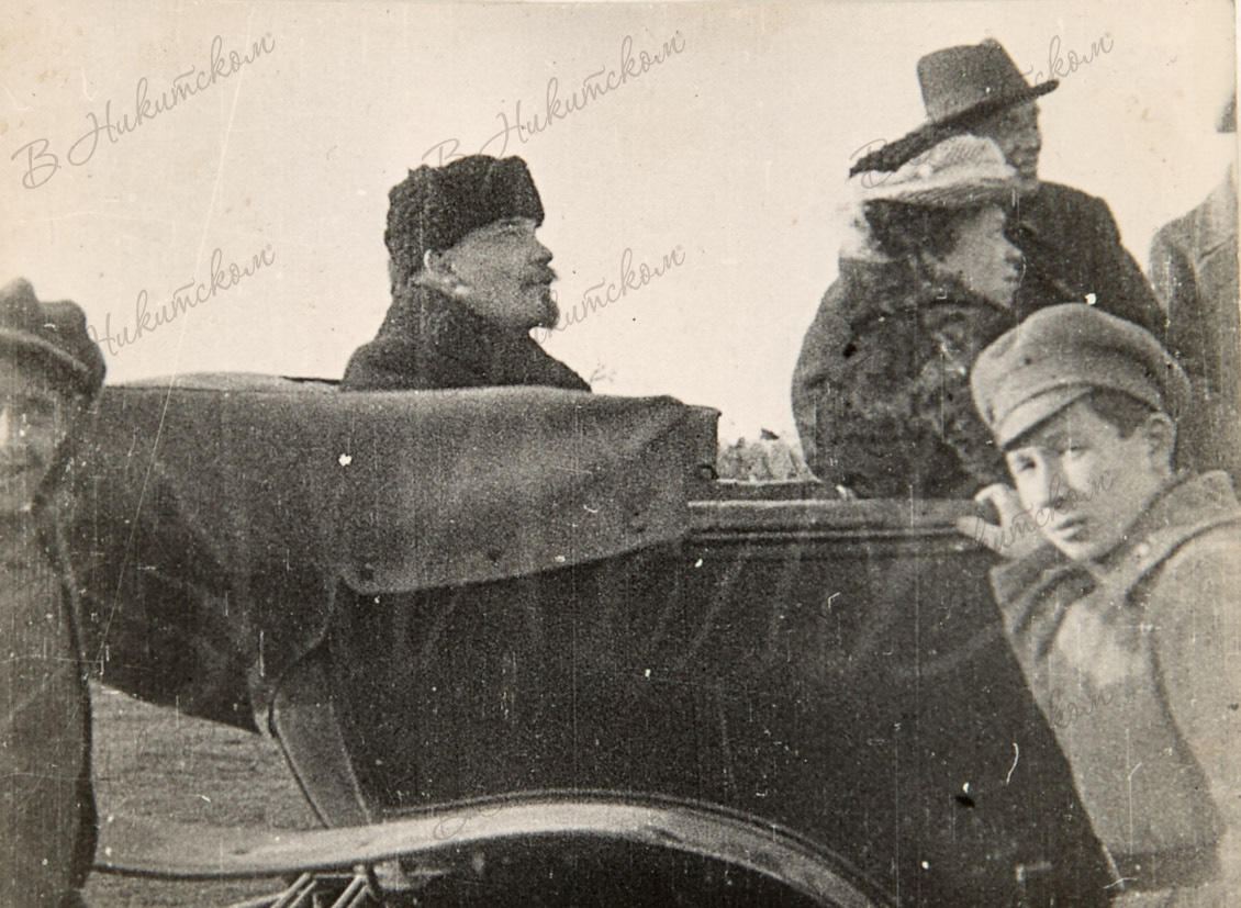 В. И. Ленин и Н. К. Крупская в автомобиле. Начало 1920-х гг. Фотография, 8*11 см.