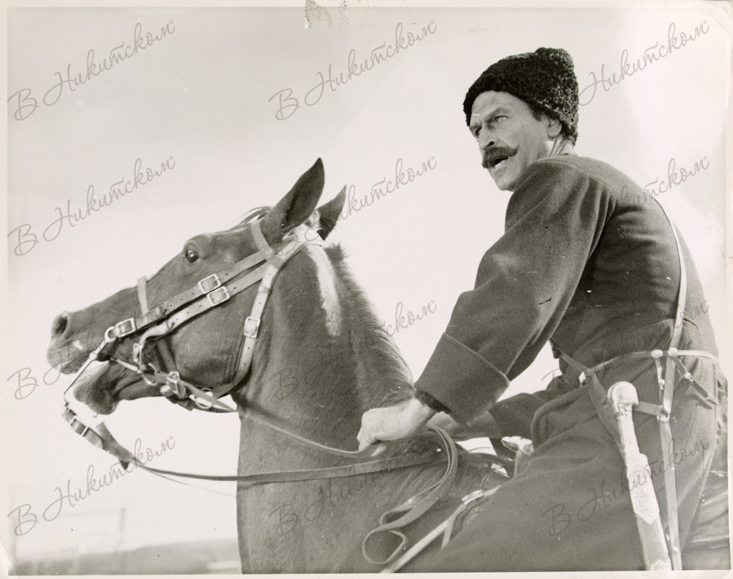 Лот из 3 фотографий артистов на съемочной площадке. 1. Петр Глебов в фильме "Тихий Дон". 1957 г.