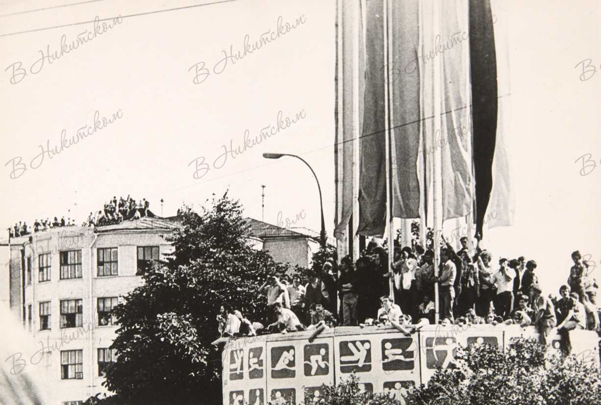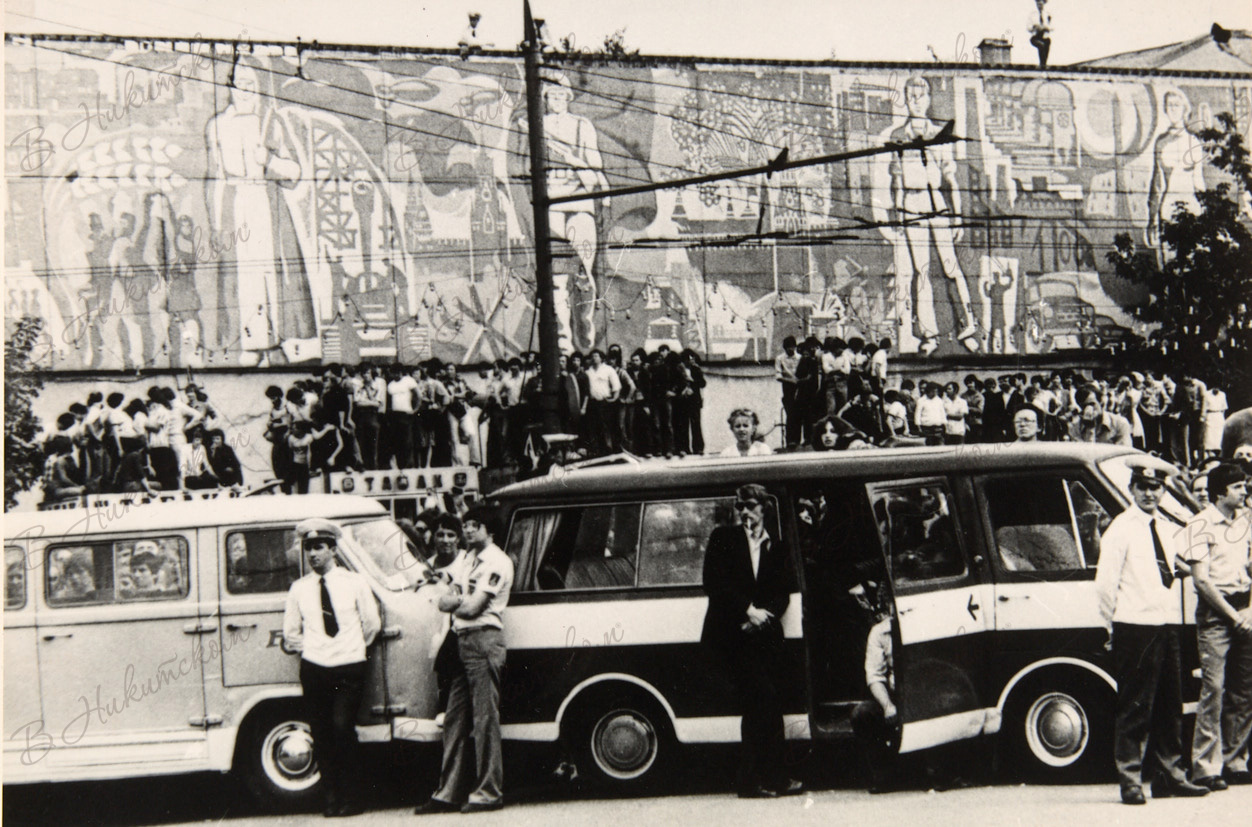 Лот из двух фотографий. Траурная церемония прощания с В. Высоцким. Июнь 1980 г. Фотографии, 15,5*23 см.