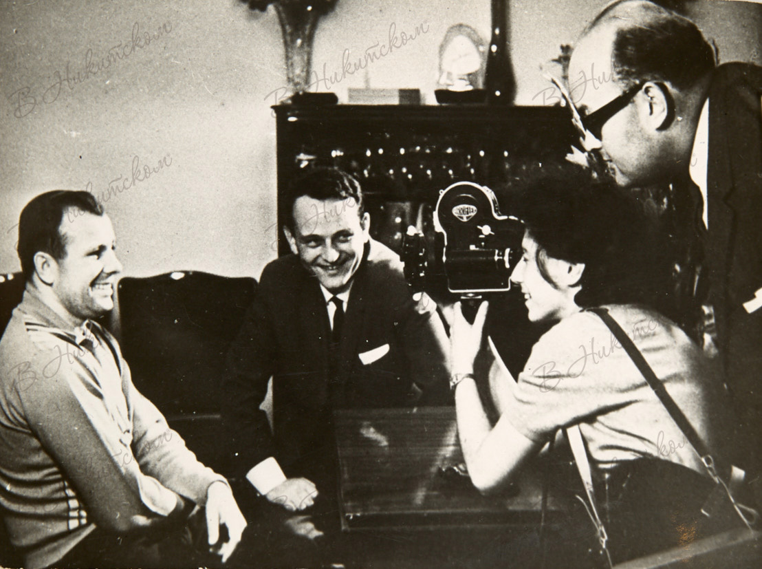 Ю. А. Гагарин. Киносъемка. Начало 1960-х гг. Фотография, 13*18 см.