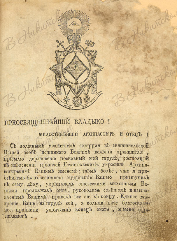 Сильвестр. Приточник евангельский или Изъяснение притчей во святом Евангелии обретающихся, на мнении святых отец основанное. [М.]: Московская Синодальная тип., 1796.
