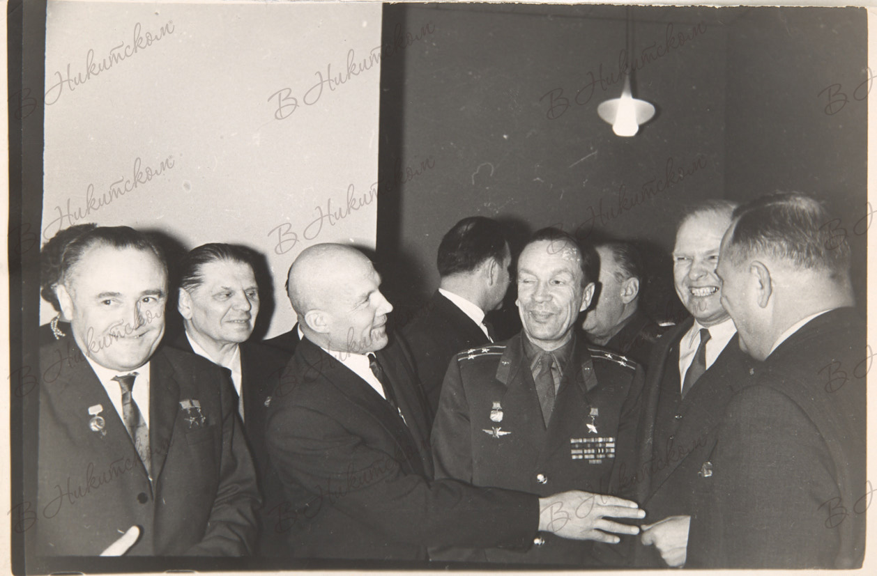 С. П. Королев в группе летчиков-испытателей. 1960-е гг. Фотография, 14,7*24 см.