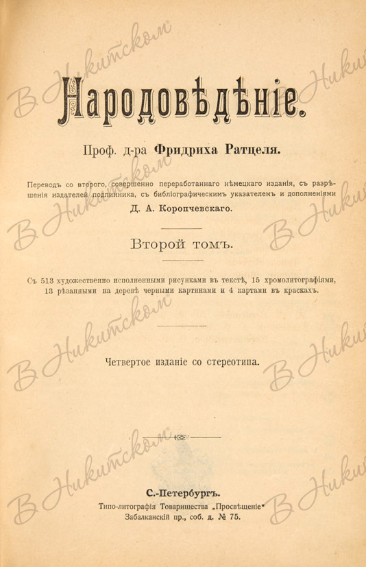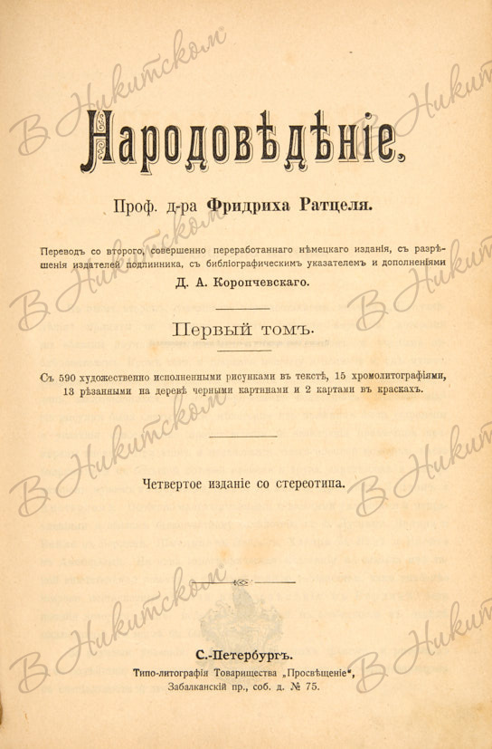 Ратцель, Ф. Народоведение / пер. со 2-го нем. изд. под ред. Д. А. Коропчевского. 4-е изд. со стереотипа. В 2 т. Т. 1-2. СПб.: Просвещение», б.г.