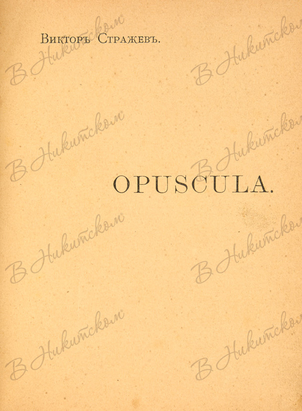 Стражев, В. Opuscula. М.: Типография Русского Товарищества, [1904].