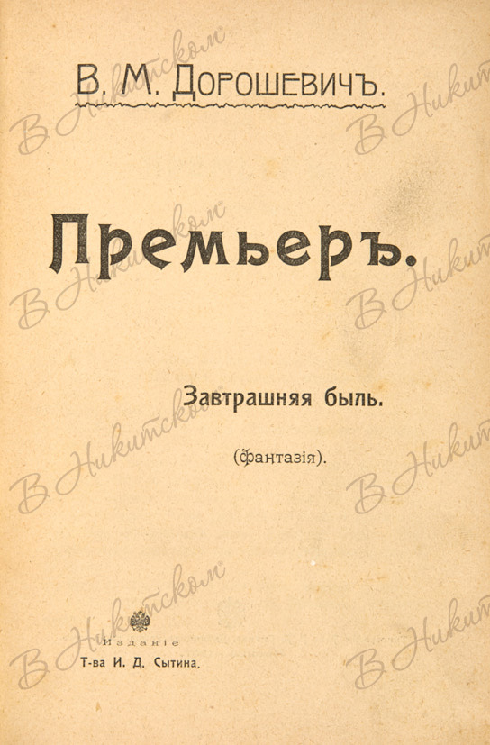 Дорошевич, В.М. Премьер. Завтрашняя быль. (фантазия). М.: Издание Т-ва И.Д. Сытина, 1907.