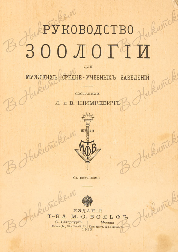 Шимкевич, В.М., Шимкевич, Л.Э. Руководство зоологии для мужских среднеучебных заведений / сост. Л. и В. Шимкевич. [В 2 ч. Ч. 1-2]. СПб.; М.: Изд. Т-ва М. О. Вольф, 1910.
