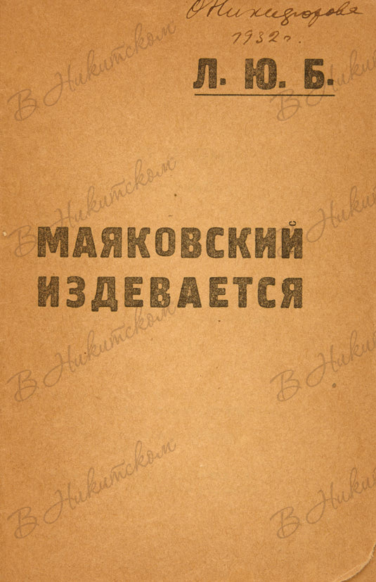 Посвящена, как и первая книга «Люблю», Л.Ю.Б. – Лиле Юрьевне Брик.