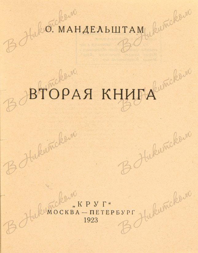 Мандельштам, О.Э. Вторая книга. М.; Пб.: Круг, 1923.