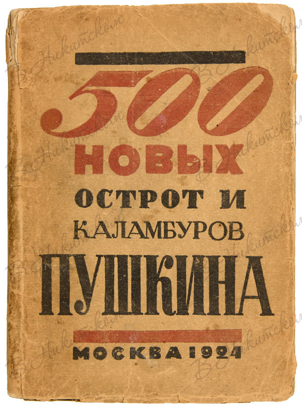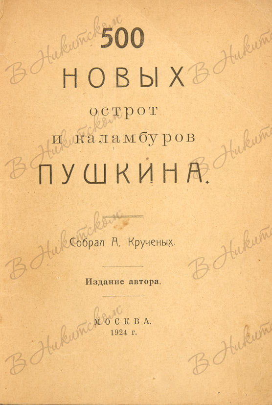 500 новых острот и каламбуров Пушкина / Собрал А. Кручёных. М.: Издание автора; типография ЦИТ, 1924.