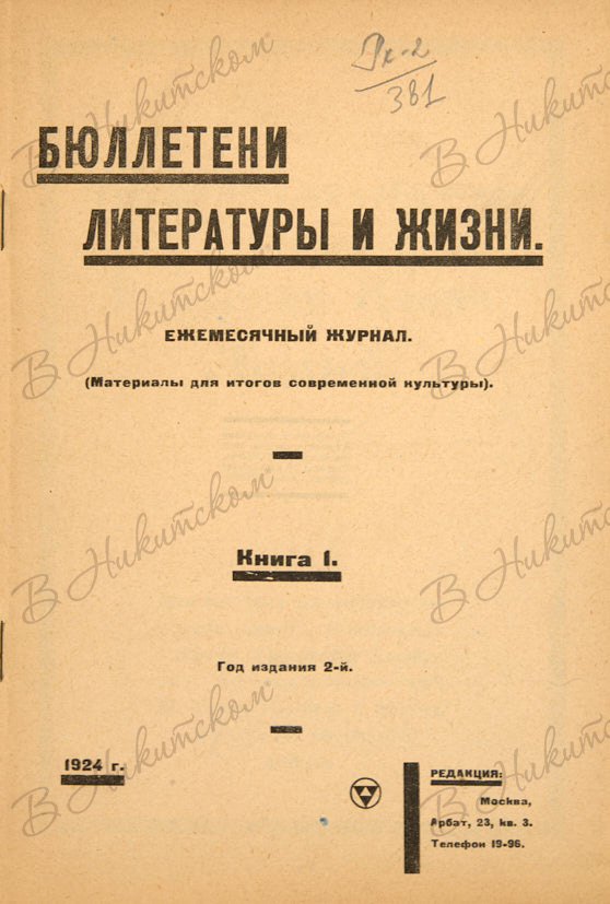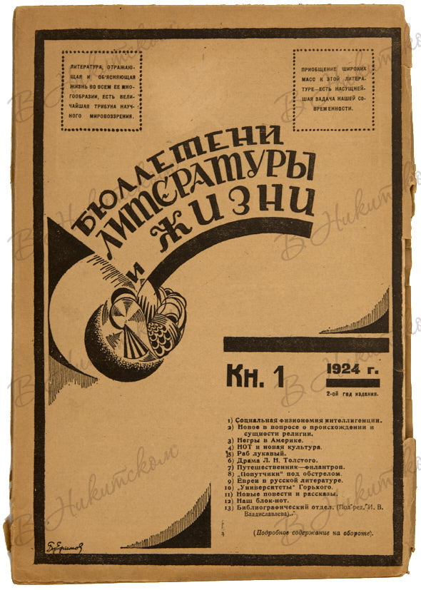 [Обложка худ. Б. Ефимова]. Бюллетени литературы и жизни. Кн. 1 за 1924 г. М., 1924.