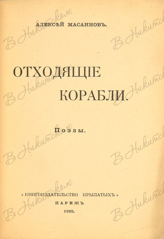 Масаинов, А. Отходящие корабли. Поэзы. Париж: «Книгоиздательство крылатых», 1925.