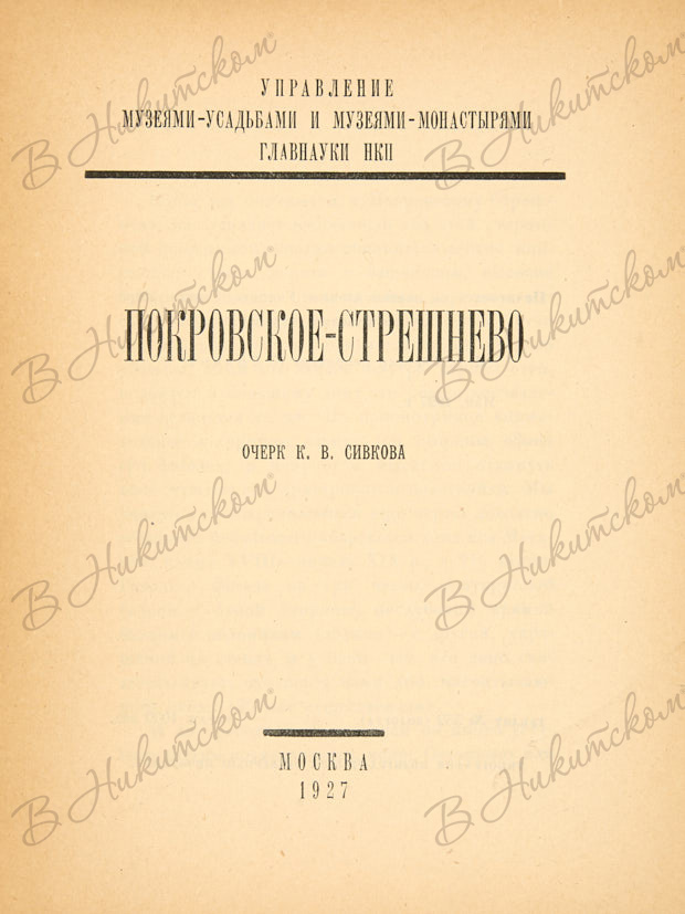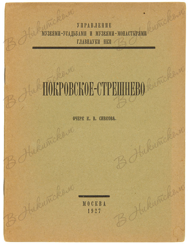 3. Сивков, К.В. Покровское-Стрешнево. М.: Тип. полиграфтреста «Северный печатник», 1927. 17, [1] с., ил. 17,6 х 13,3 см. В шрифтовой издательской обложке. Следы выцветания обложки. Блок чистый. В хорошем состоянии.