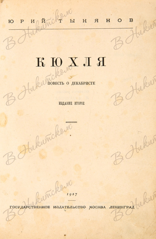 Тынянов, Ю.Н. Кюхля. Повесть о декабристе. 2-е изд. М.; Л.: Государственное изд-во, 1927.