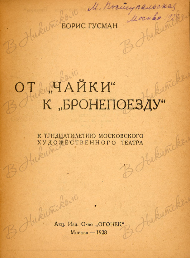Гусман, Б. От «Чайки» к «Бронепоезду». М.: Акц. Изд. О-во «Огонёк», 1928.