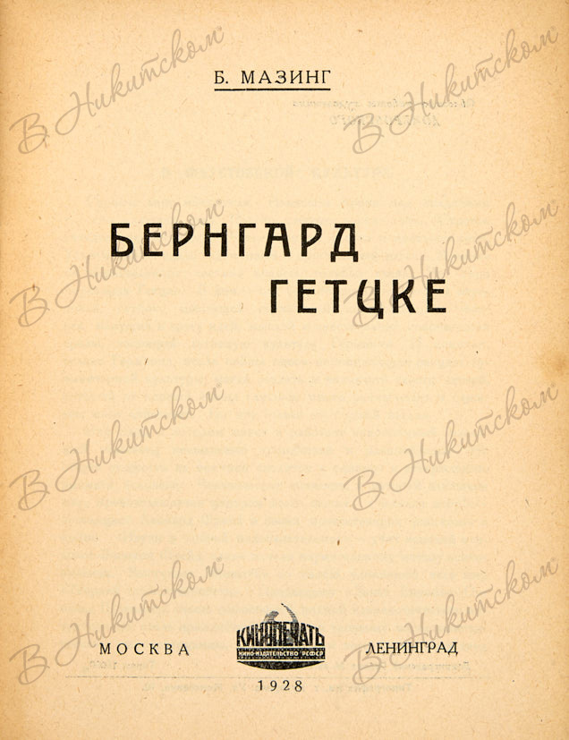 Мазинг, Б. Бернгард Гетцке. М.; Л.: КИНОПЕЧАТЬ, 1928.
