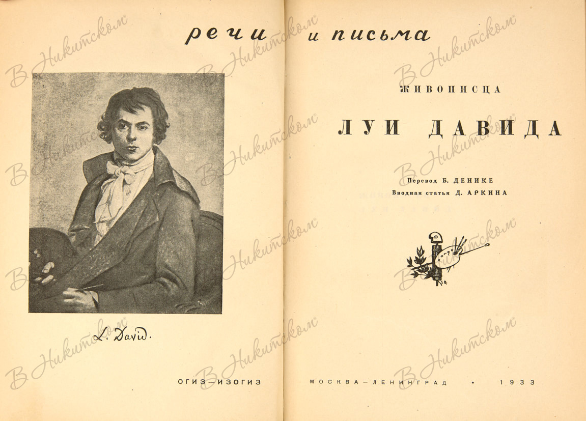 Речи и письма живописца Луи Давида / пер. Б. Денике, вводная статья Д. Аркина. М.-Л.: ОГИЗ - ИЗОГИЗ, 1933.