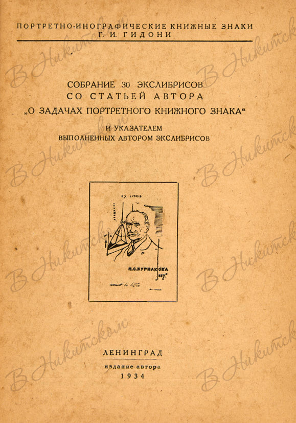 [Серия «Портретный экслибрис». Тираж 550 экз.!]. Портретно-иконографические знаки Г.И. Гидони. Л.: Издание автора, 1934.