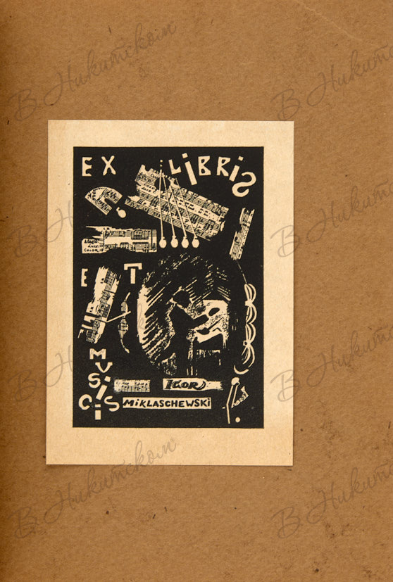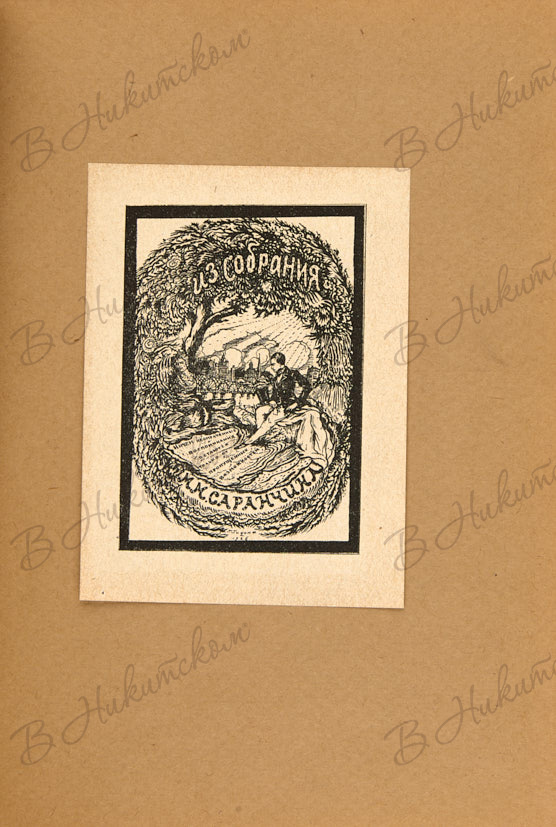 На 21 л. наклеены 21 экслибрис работы Г.И. Гидони; изображения еще 9 экслибрисов помещены в тексте и на тит. листах. На многих экслибрисах изображены владельцы библиотек: Б.В. Фармаковский, С.А. Погодин, А.А. Починков, П.И. Савинов, С.О. Маизель, Ф.И. Успенский, М.Н. Покровский и другие. Издание редкое.