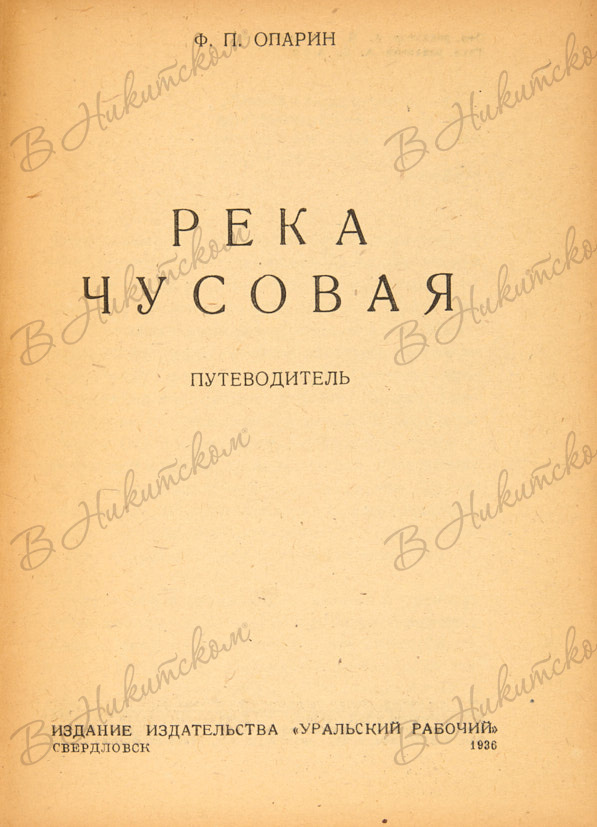 Опарин, Ф. Река Чусовая. Путеводитель. Свердловск: Уральский рабочий, 1936.