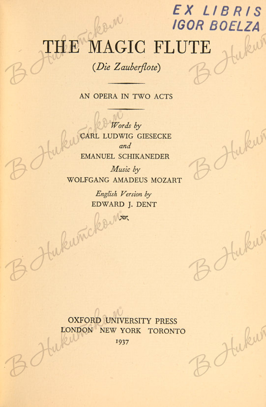 1. [«Волшебная флейта» Моцарта. Английская версия Эдварда Дж. Дента]. The magic flute by Mozart. English version by Edward J. Dent. Лондон: Oxford University Press, 1937. 49, [3] с. 18,5 х 12,4 см. В иллюстрированной издательской обложке. Незначительные следы выцветания обложки. В очень хорошем состоянии.