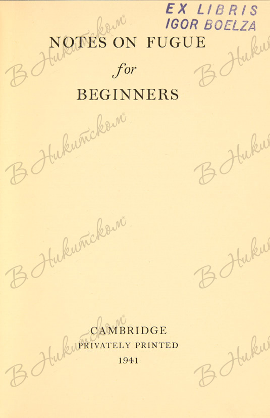 3. [Ноты по фуге для начинающих]. Notes on fugue for beginners. Кэмбридж: Privately Printed, 1941. 47, [3] с. 18,5 х 13 см. В иллюстрированной издательской обложке. В очень хорошем состоянии.