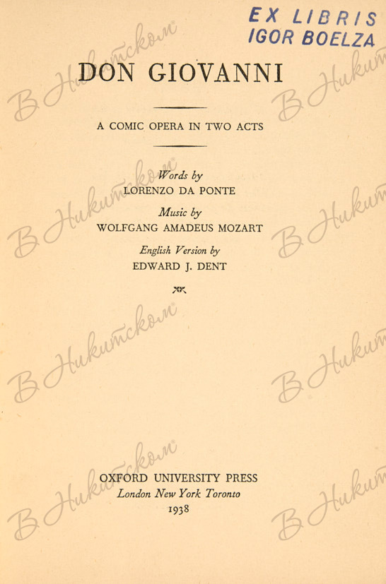 2. [«Дон Жуан» Моцарта. Английская версия Эдварда Дж. Дента]. Don Giovanni. By Mozart. English version by Edward J. Dent. Лондон; Нью-Йорк; Торонто: Oxford University Press, 1938. XX, 71, [1] с. 18,5 х 12,5 см. В иллюстрированной издательской обложке. В очень хорошем состоянии.