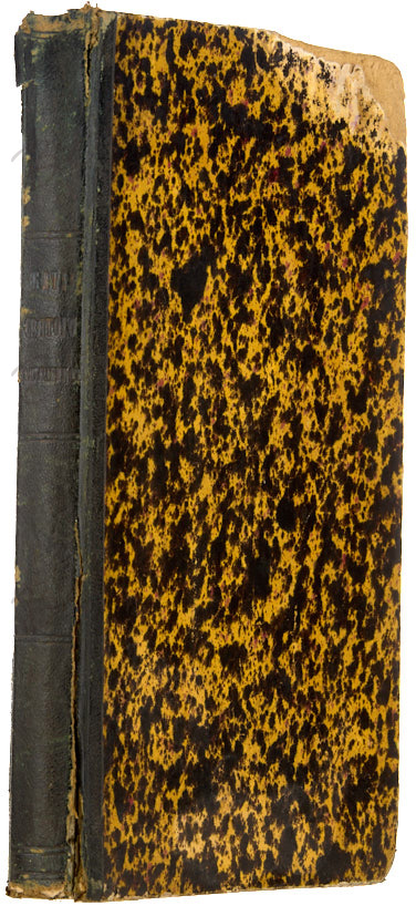 23,3 х 16 см. Две части в одном полукожаном владельческом переплете эпохи. Потертости крышек и корешка, надрывы корешка, утрата фрагментов бумаги на верхних уголках крышек. Утрата с. 1-2, утрата половины листа с иллюстрацией. Многочисленные следы залития и пятна в блоке.