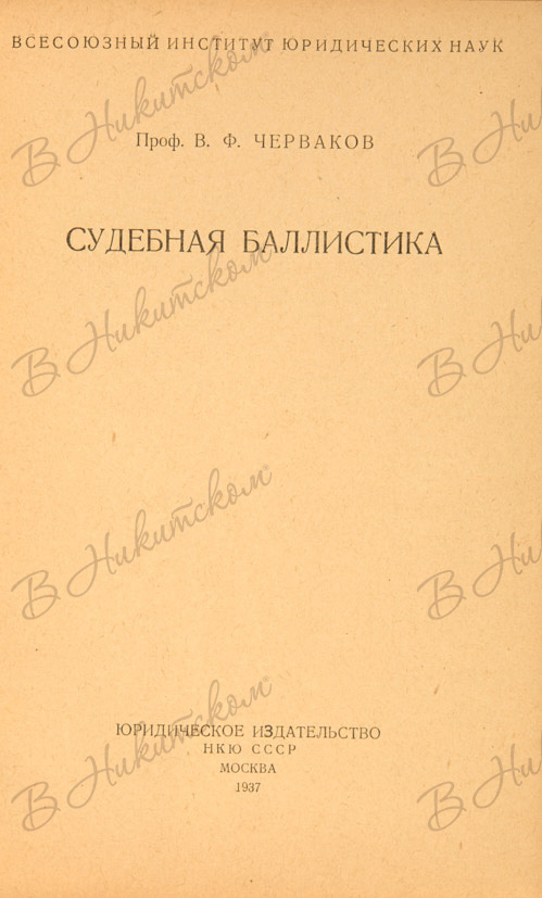 Черваков, В.Ф. Судебная баллистика. М.: Юридическое изд-во НКЮ СССР, 1937.