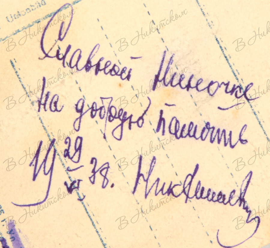 Ханаев, Н. [Автограф]. Почтовая карточка с изображением Н.С. Ханаева. [1938].