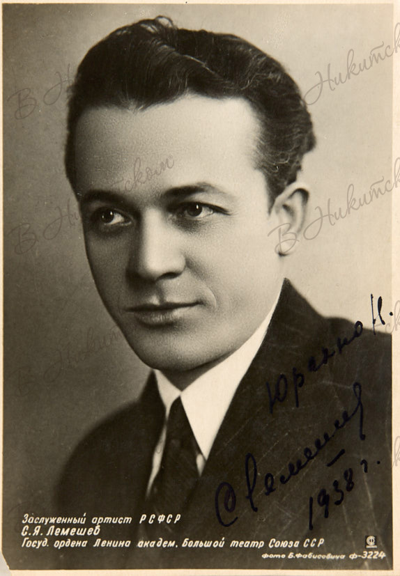 Лемешев, С. [Автограф]. Почтовая карточка с изображением С.Я. Лемешева и автографом. [1938].