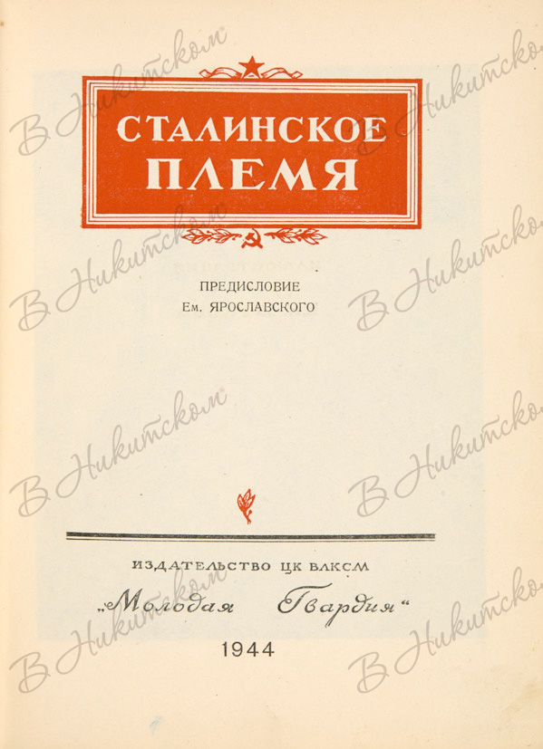 [Прижизненная публикация А. Платонова]. Сталинское племя / предисл. Ем. Ярославского, ил. худ. Н.Н. Жукова. [М.]: Молодая гвардия, 1944.