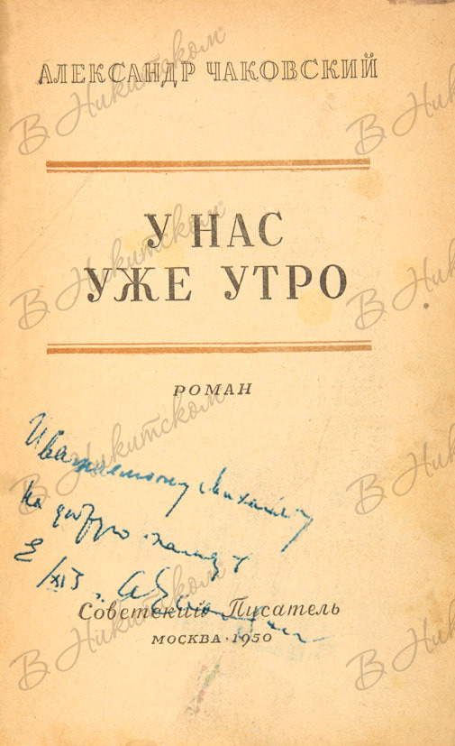 Чаковский, А. [Автограф]. У нас уже утро. Роман. М.: «Советский писатель», 1950.