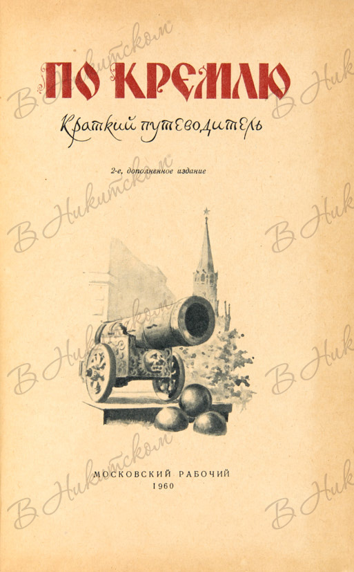 Гончарова, А.А., Андреев, А.М., Хамцов, А.И. По Кремлю. Краткий путеводитель. 2-е изд. М.: Московский рабочий, 1960.