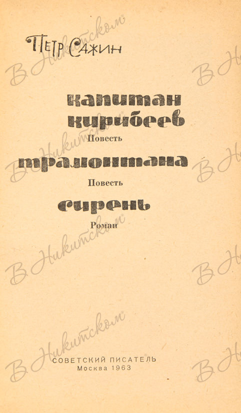 Сажин, П. [Автограф]. Капитан Кирибеев. Трамонтана. Сирень. М.: «Советский писатель», 1963.