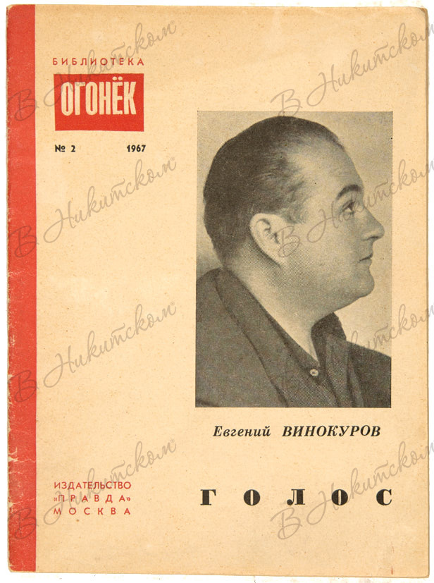 31, [1] с. 16,8 х 12,4 см. В иллюстрированной издательской обложке. Небольшие потертости обложки, замятости нижнего уголка блока. На титульном листе автограф автора: «Дорогому / Сергею Петровичу Кошечкину / мой еще не совсем / окрепший / [голос], / от нового правдиста, / очень сердечно и / дружески / Евг. Винокуров / 13.67».