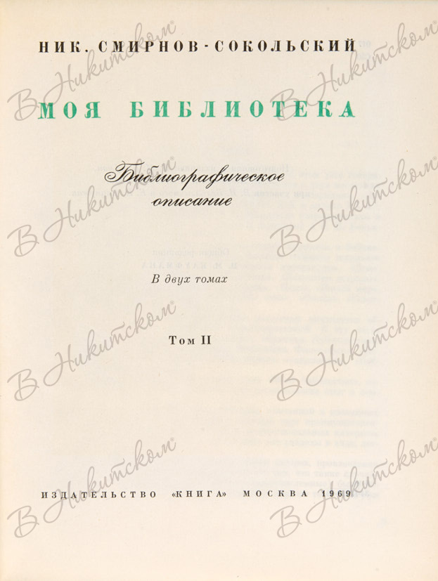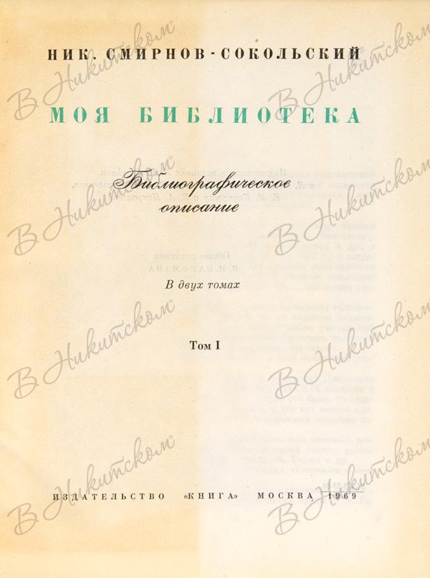 Смирнов-Сокольский, Н.П. Моя библиотека. Библиографическое описание. В 2 т. Т. 1-2. М.: «Книга», 1969.