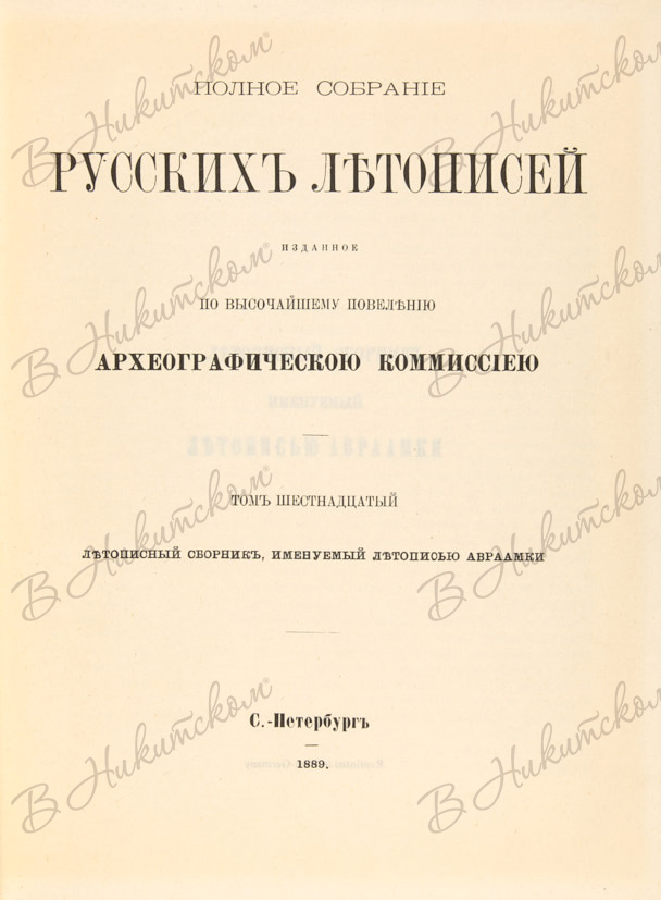 [Репринтное издание]. Полное собрание русских летописей, изданное по Высочайшему повелению Археографической комиссиею. Т. 16. Летописный сборник, именуемый летописью Авраамки. СПб., 1889. [Dusseldorf, Vaduz, 1973].