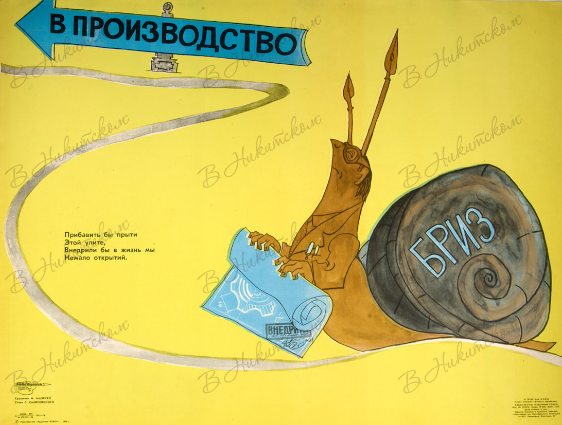 [Плакат творческого объединения «Боевой карандаш»]. Прибавить бы прыти этой улите… / худ. М. Мазрухо, стихи С. Смирновского. Л.: Художник РСФСР, 1976.
