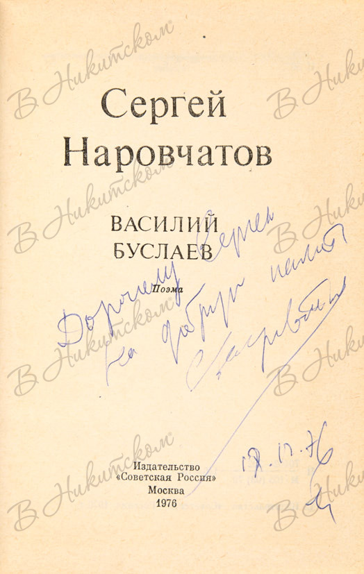 Наровчатов, С. [Автограф]. Василий Буслаев. Поэма. М.: «Советская Россия», 1976.