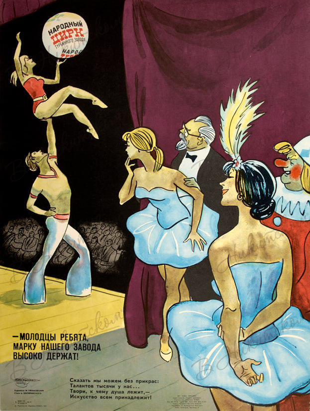 [Плакат творческого объединения «Боевой карандаш»]. Молодцы, ребята, марку нашего завода высоко держат! / худ. Ж. Ефимовский, стихи А. Шкляринского. Л.: Художник РСФСР, 1977.