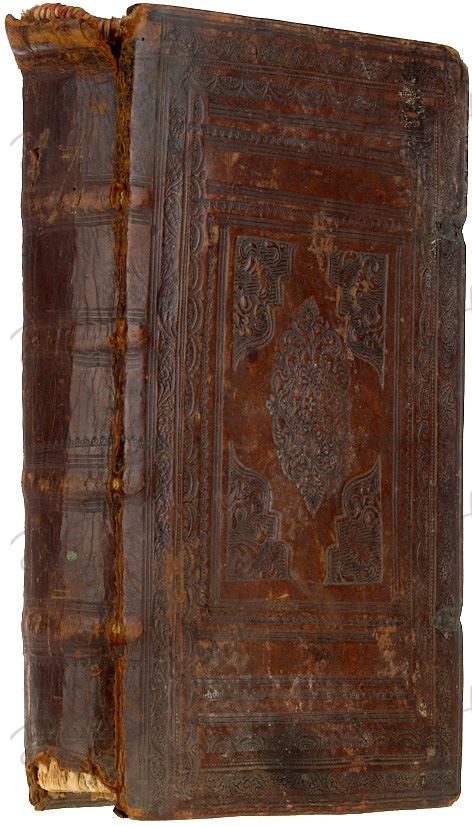 В цельнокожаном переплете эпохи с блинтовым тиснением. Утрата небольших фрагментов кожи с переплета, надрыв верхнего края корешка, владельческие надписи на форзацных листах (в том числе три надписи, принадлежащие купцам города Ардатова), следы жучка на первых листах, утраты фрагментов по нижнему краю гравюры, первых и последних листов. Небольшие загрязнения страниц. Утрата одного ненумерованного листа после л. 45 (возможно, пустой лист). Гравюра отделена. Ненумерованные листы с оглавлением подрезаны по краям.
