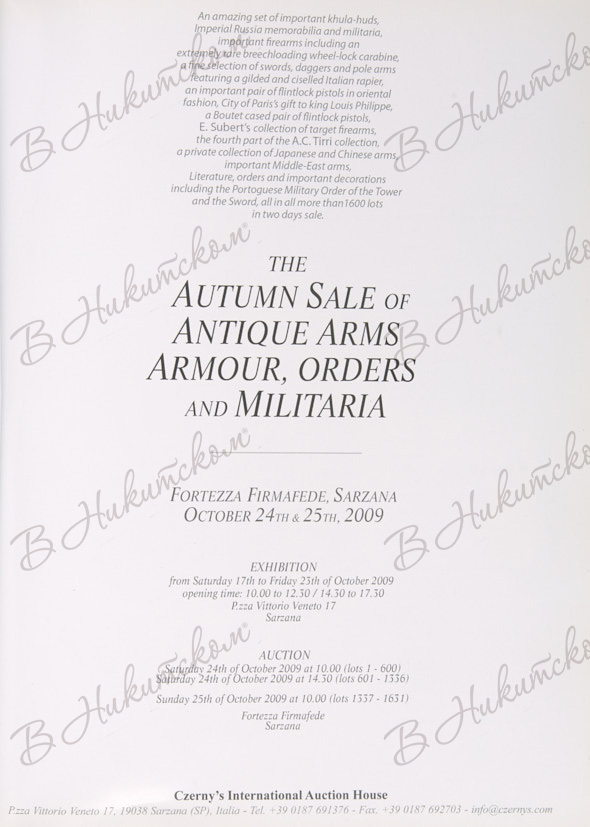 [Каталог аукциона Czerny's. Осенняя распродажа антикварного оружия. Доспехи, ордена и милитария]. Czerny's. The autumn sale of antique arms. Armour, orders and militaria. 24-25 октября 2009.
