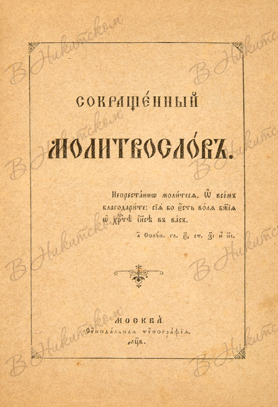Сокращенный молитвослов. М.: Синодальная тип., 1902.