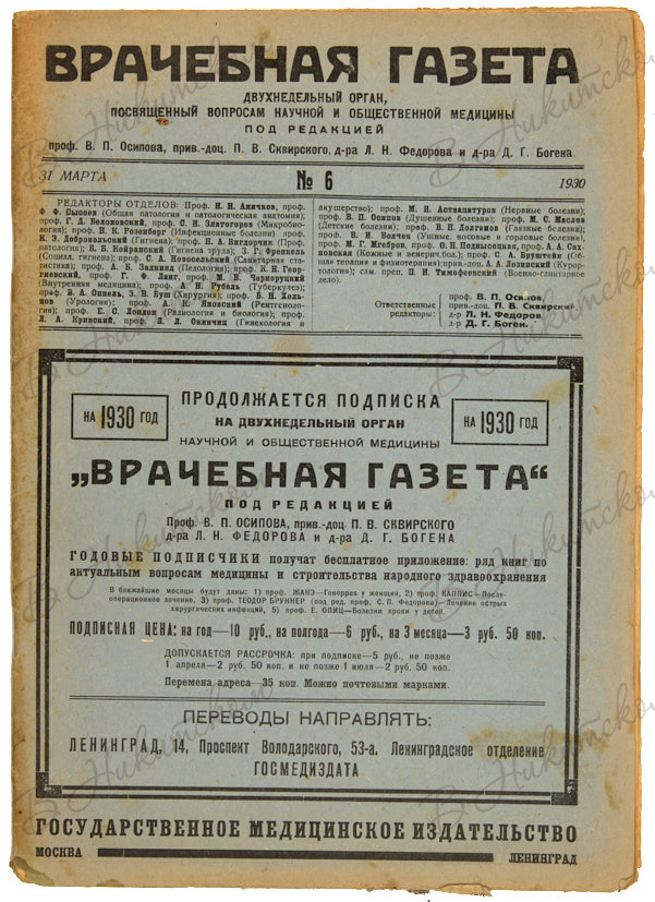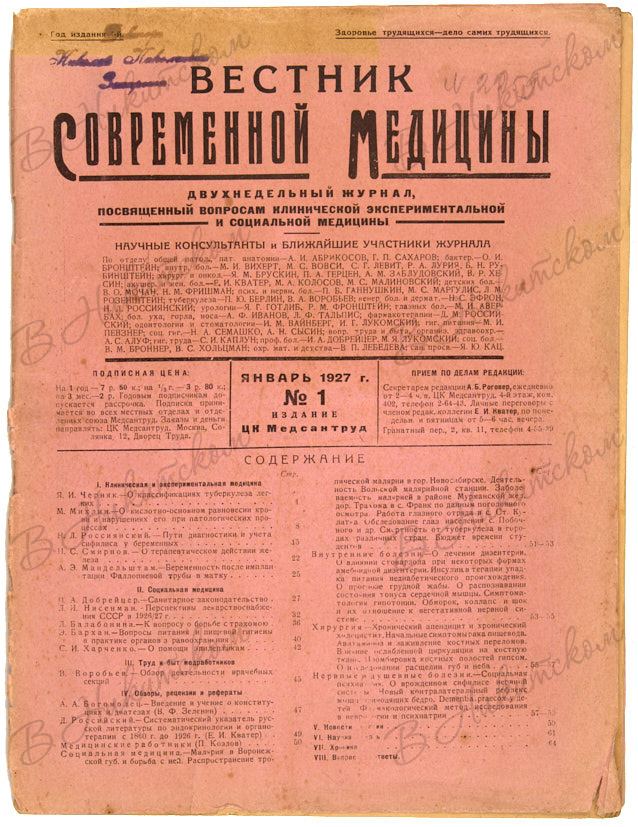 Подборка из семи выпусков разных медицинских журналов за 1905 - 1930 гг.