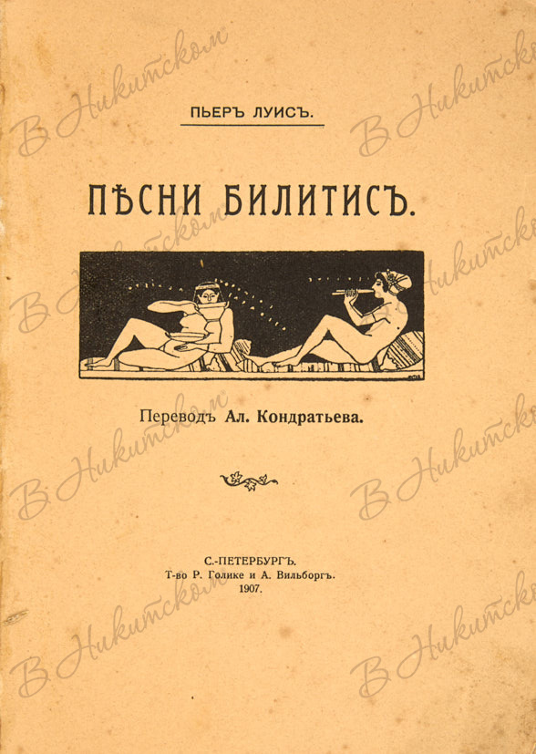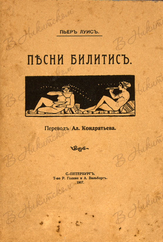 Луис, П. Песни Билитис / перевод Ал. Кондратьева. СПб.: Т-во Р. Голике и А. Вильборг, 1907.