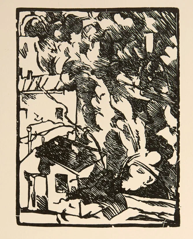 Лот из 2 линогравюр: Двор; У окна. 1910-1920 гг. Поздние отпечатки с авторских досок. 39,7×30 см.