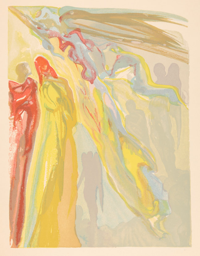 Дали Сальватор (1904-1989). Лот из 9 цветных ксилографий. Ангел Света. Пробные отпечатки с разбивкой по цвету. Листы для сюиты к «Божественной комедии» Данте. 1959-1963 г. Цветная ксилография, 33×26,2 см.
